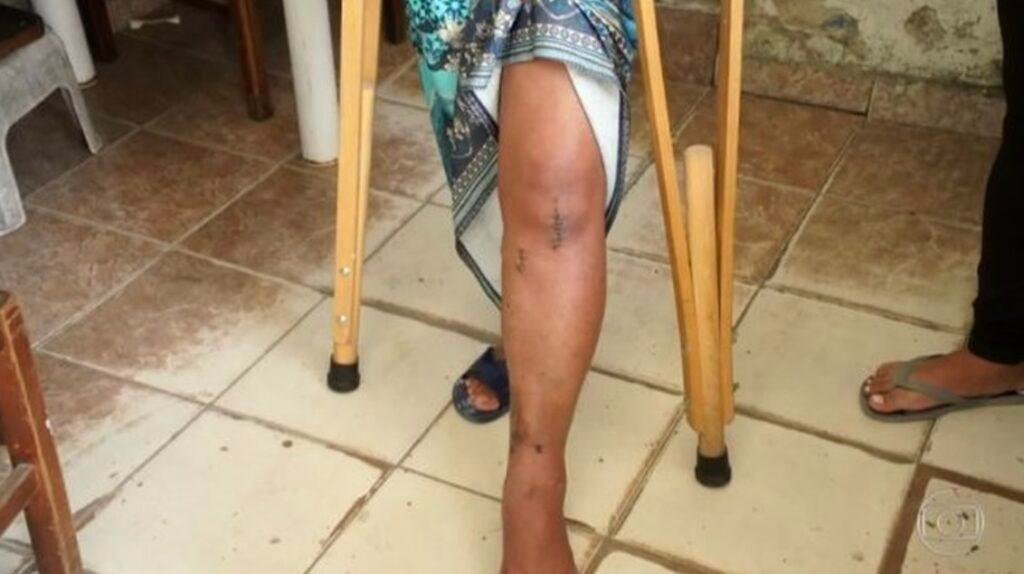 Ela também ressalta que ainda sente dores mesmo tendo passado por uma cirurgia por ter quebrado a perna.