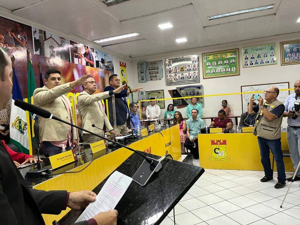A Câmara Municipal de Lagoa Seca realizou, na manhã desta sexta-feira (30), a sessão solene de posse da nova mesa diretora para o biênio 2023-2024. Apesar de os componentes da mesa serem praticamente os mesmos, houve mudança nos cargos dos parlamentares.