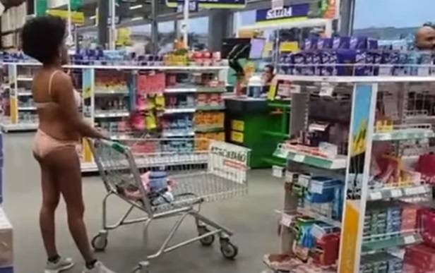 Professora tirou a roupa em protesto contra racismo no Atacadão (foto: reprodução redes sociais)