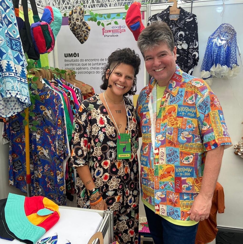Com confecção de roupas sem identificação de gênero, carregadas de estampas afetivas e que contam histórias, o trabalho de Lara (coletivo Umói) foi um dos destaques entre os 50 expositores. A jovem, além de levar para casa a premiação de R$ 40 mil, vai participar da Expo Favela nacional – com transporte e acomodação garantidas.